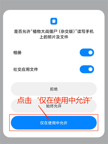 1、游戏启动需要获取相关权限,选择【仅在使用中允许】;