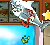 鲨鱼僵尸的潜水状态可以被低矮的植物所攻击,以海碗豆为首的一批低弹道植物可以有效打击鲨鱼僵尸;
