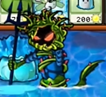 只在水中出现,每15秒召唤3个缠绕潜水僵尸(三行,每行各一个),免疫缠绕海草效果,对植物造成5倍啃咬伤害,免疫一般控制;