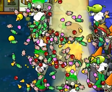 先触发糖果消消乐效果,然后赋予僵尸红温/灼烧/黄油/中毒/减速/冻结/魅惑,中的随机一种效果(概率相等)
