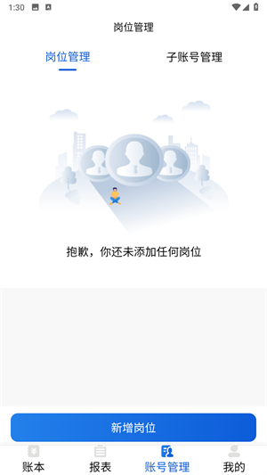 1、打开软件,进入账号管理页面,进入岗位管理,点新增岗位。
