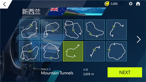 2、这里以快速模式为例,玩家需要选择想要挑战的赛道,随后选择NEXT;