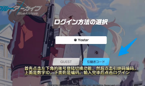 2、接着来到这个界面,玩家点击右边的引继码登陆。