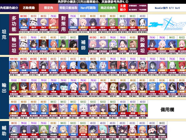 玩家可以根据下图作为参考,了解角色的强度排行。