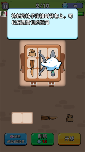 1、在每局战斗开始前,玩家可以将商店刷新的装备放入背包中;
