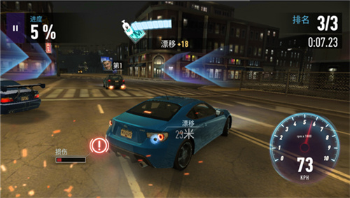 5、通过向下划动屏幕可以进行漂移,从而更快速完成过弯;