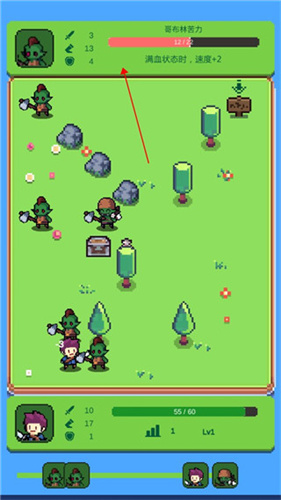 3、点击敌人即可查看详细的属性,玩家需要根据不同哥布林的属性选择战术;