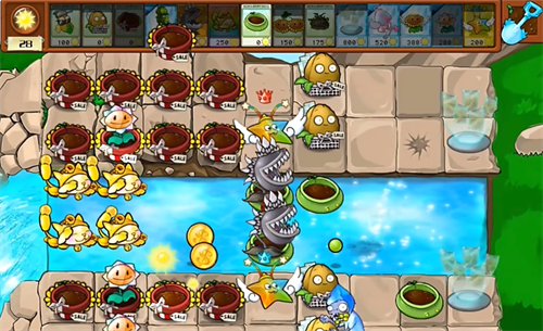 1、游戏开局时,玩家需要通过种植可以生产阳光的植物,用以保证后续的发展;