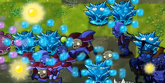 3、合理布置可以进行多方向攻击的植物将更高效地对僵尸进行攻击;