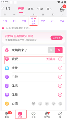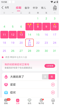 来月经的时候简单的记录一下时间、颜色等,后续系统将自动预测您的经期。