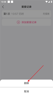 2、长按需要删除的爱的记录,跳出弹窗后点击【删除】。