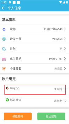 2、进入个人信息选择【绑定QQ】,然后绑定即可。