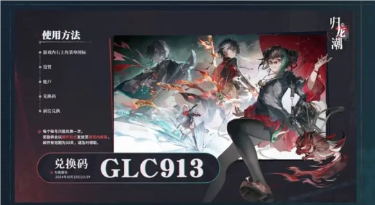 礼包兑换码:GLC913