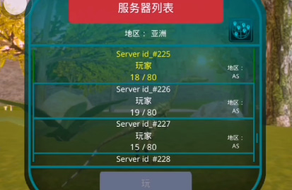 4、最后就可以选择服务器进入游戏了,还能通过上方的的按键来切换地区,加入其他位置的服务器。