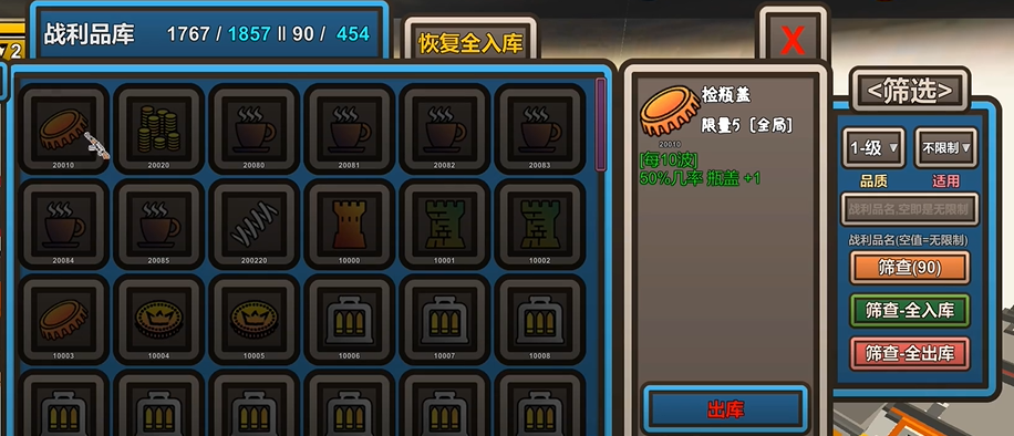2、如果要在肉鸽模式下拥有更好的体验,建议将战利品出库尽可能升到更高的等级;