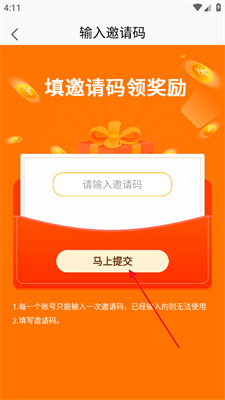 3、在框中输入好友的邀请码并提交即可获得奖励。