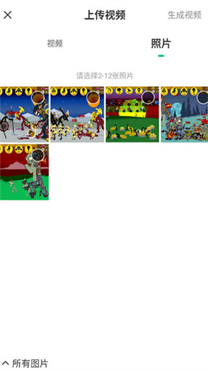 3、当选择合适的素材后,你就可以用照片或者视频来制作,然后点击生成视频。