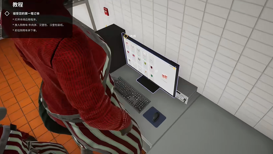 1、游戏以第一人称视角的形式进行表现,同时支持多人共同联机游戏,玩家在游戏开始时需要找到店内电脑进行材料订购;