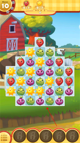 4、通过划动的方式交换两个目标之间的位置,随后如果有三个相同的目标相连即可完成消除;