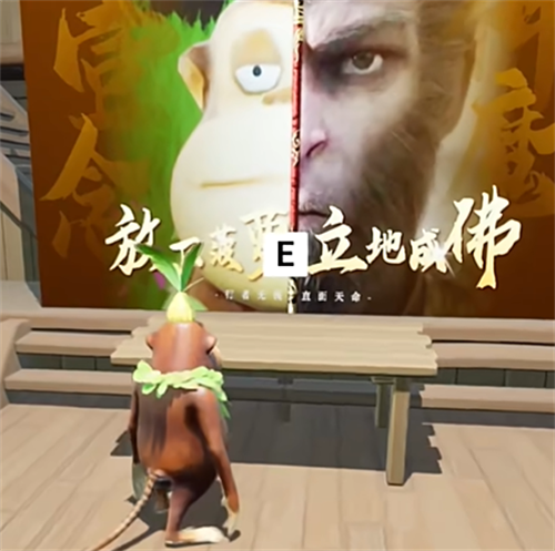 1、玩家需要到图中场景,来到放下菠萝立地成佛的牌子前,切换为吉吉国王;