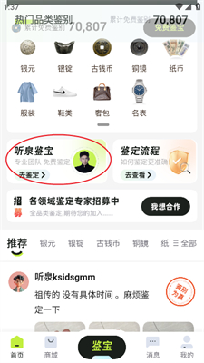 听泉鉴宝是一个免费的鉴宝平台,给用户提供专业的文玩鉴赏、脚力服务,一起探索历史的奥秘、发现文化的魅力,只需要拿起手机拍摄藏品图片并上传即可在线鉴别真假、年代、估值等等,专业的文玩收藏玩家团队实时为您服务。