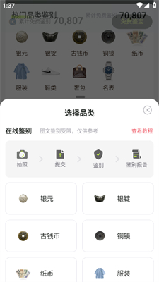 2、首页热门鉴定栏 变更为双排展示,展示名表鉴定和纸币鉴定入口