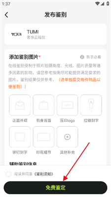 4、拍摄图片和信息点击【免费鉴定】即可。