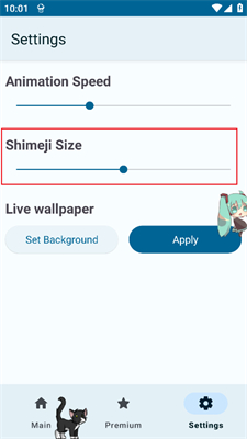 2、拖动【shimeji size】即可调整宠物的大小。