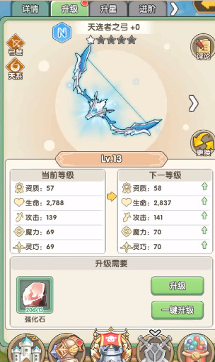3、海量装备可以从多个方面来养成提升,通过升级、升星、进阶来增加装备属性,更好的提升角色战斗力。