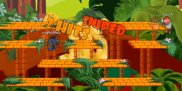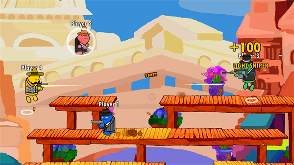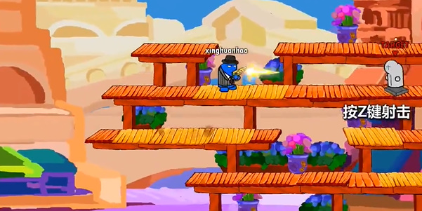 混乱大枪战一款魔性枪战的格斗游戏,这个游戏的玩法是比较有特点的,这个游戏的主要战斗方式就是把这个敌人打落到这个平台下面,游戏中没有任何血量,所以大家的容错是比较大的,非常适合各种好友之间的开黑,下载游戏之后在平台上尽量把这个对手打下去吧!
