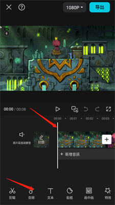 3、很方便就能调整视频中的音频音量,添加背景音乐配乐也行,软件和本地导入都可;