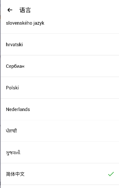 4、最后在语言页面一直往下滑,找到底部的【简体中文】。