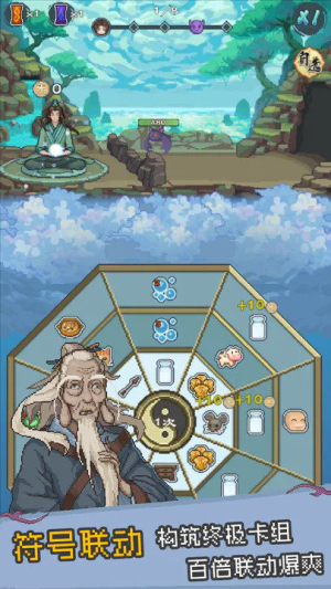 1、创新八卦系统:游戏核心采用传统八卦阵法,每个卦象代表不同属性技能。相邻卦位产生元素联动,触发特殊攻击效果。20+基础符文可升级强化,创造独特战斗流派。随机卦象组合保证每局策略变化。