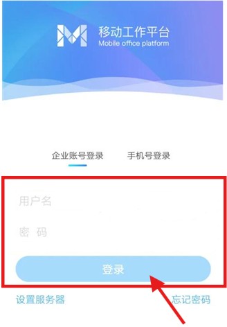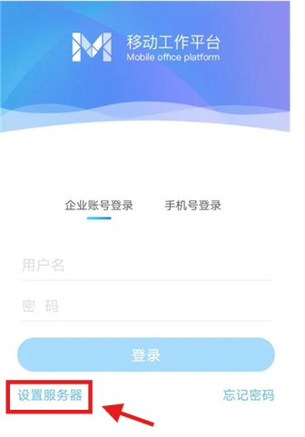 1、进入软件,在登录页面,首先要设置服务器,再输入账号和密码。