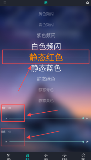 3、可以滚动选择模式、调节速度和亮度。