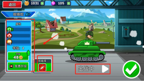 2、收集资源,在地图中收集金币和强化组件,用于升级坦克和购买新坦克。