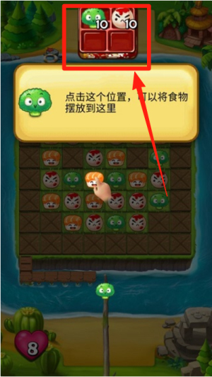 2、三消不是普通的滑动三消,选择串击三消,将要选择的食品串在竹签上进行消除。