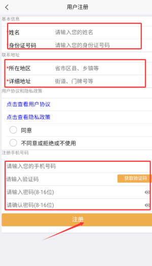 3、按顺序填入用户信息,输入手机号码等待验证即可完成认证。