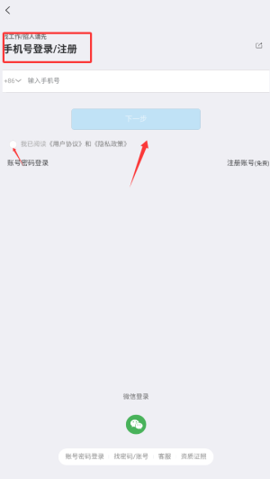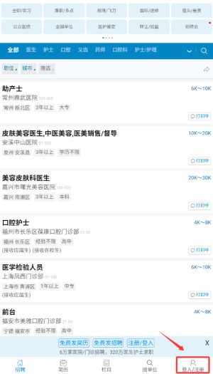 1、打开康强医疗招聘人才网APP,进入界面点击登录注册。