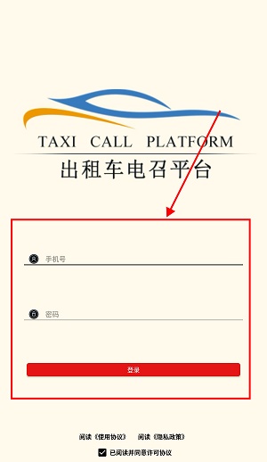 1、打开古城电召app,出现下面画面。