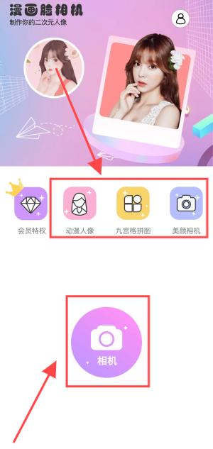 1、打开软件后,可以生成动漫人脸、九宫格拼图美颜相机等。