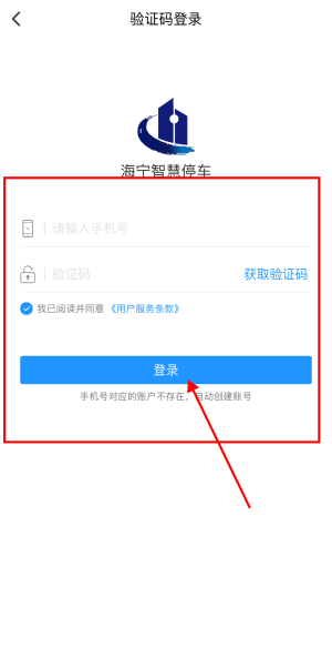 1、打开海宁智慧停车app,输入手机号和验证码点击“登录”。