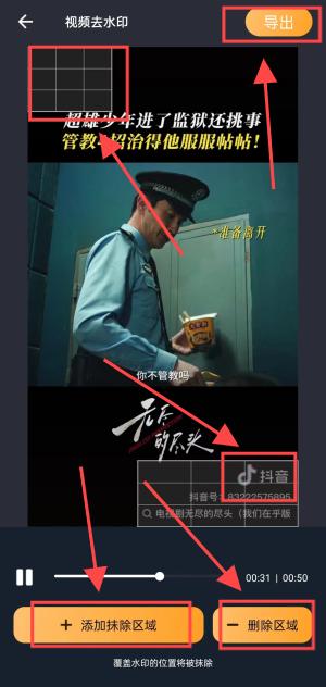 3、把网格移到要去的水印上方后,调整大小。点击导出就可以了。