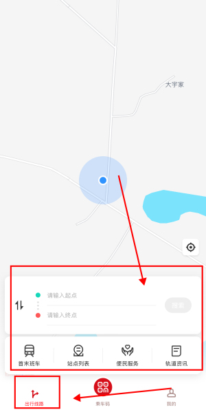 3、在出行线路页面中输入起点和终点可以查询首末班车等信息。