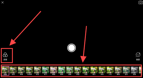 2、点击拍照,点击左下角换滤镜,点击右下角调美颜参数。