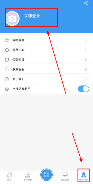 1、打开嵊州公交app,在个人中心页面中点击头像进行登录。