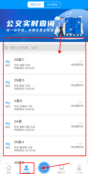3、还可以在出行规划页面中搜索公交路线、站点等信息。