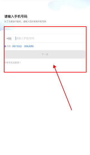 3、输入手机号点击下一步就可以进行登录。