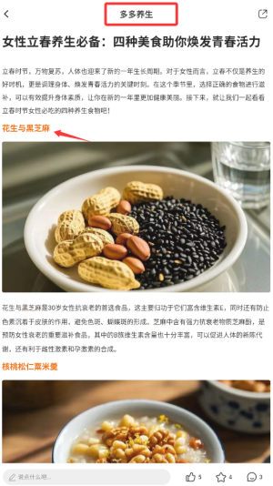 4、社区互动平台:汇聚养生爱好者交流经验,分享健康生活心得,营造积极向上的养生氛围。
