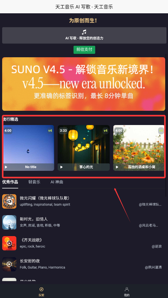 3、点击ai写歌即可创作。